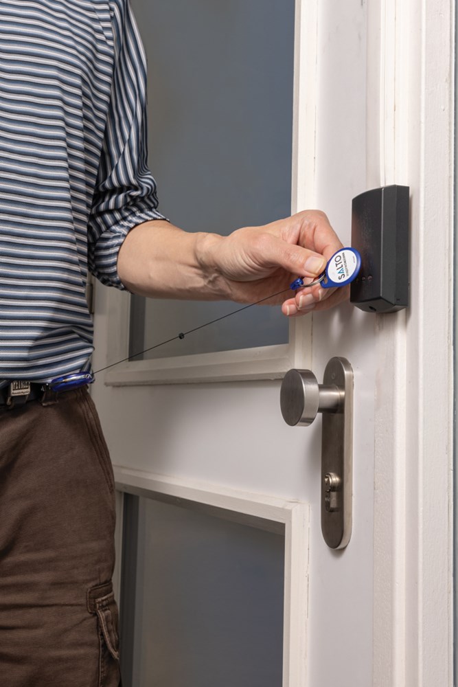 Rolclip-sleutelhanger gemaakt van RCS-gerecycled ABS en zinklegering. Ideaal item voor op kantoor, op een beurs of zelfs tijdens het skiën. Met koord van 60 cm om badge te bevestigen voor gemakkelijke toegang. Met karabijnhaak voor bevestiging aan tas of kleding. Totaal gerecycled materiaal: 34% op basis van het totale gewicht van het item. RCS-certificering zorgt voor een volledig gecertificeerde toeleveringsketen van de gerecyclede materialen. Verpakt in papieren zak.