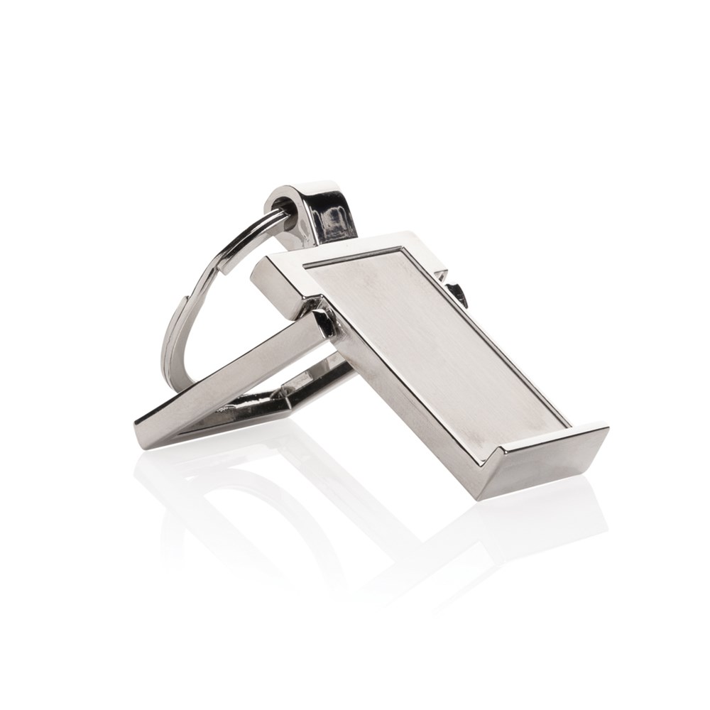 Luxe sleutelhanger met telefoonstandaard gemaakt van RCS gerecycled zinc alloy. Totaal gerecycled...meer