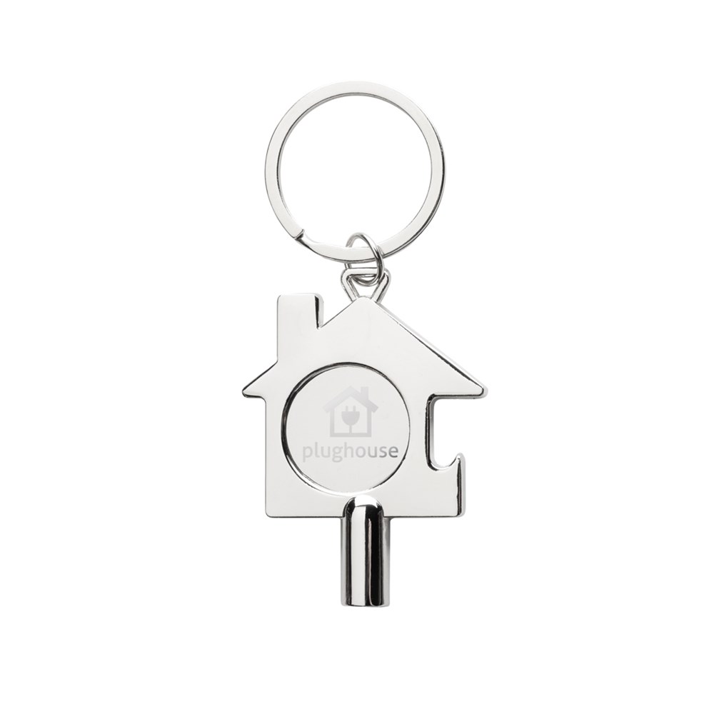 Multifunctionele sleutelhanger met radiatorsleutel, caddymuntje en sterke flesopener. Gemaakt van...meer