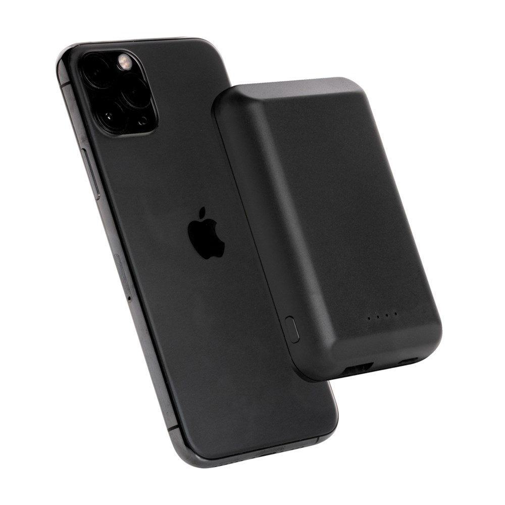 Klik deze magnetische powerbank met draadloze oplader aan de achterkant van uw Iphone 12 om uw apparaat op te laden. De magneten zijn perfect uitgelijnd om altijd de juiste oplaadpositie op uw telefoon te garanderen. De 5W draadloze oplader is compatibel met alle QI-apparaten (Iphone 8 en hoger en Android-apparaten), dus op andere telefoons kan hij worden gebruikt als een gewone draadloze powerbank. Voor opladen via kabel biedt de powerbank één USB-uitgang (2A) Inclusief 35 cm TPE type C-kabel. Artikel en accessoires PVC-vrij. Type-C-input 5V/2A; USB-output 5V /2A; Draadloze uitgang 5V/1A 5W; 17 stuks hoge kwaliteit N52H hittebestendige magneten geïntegreerd.