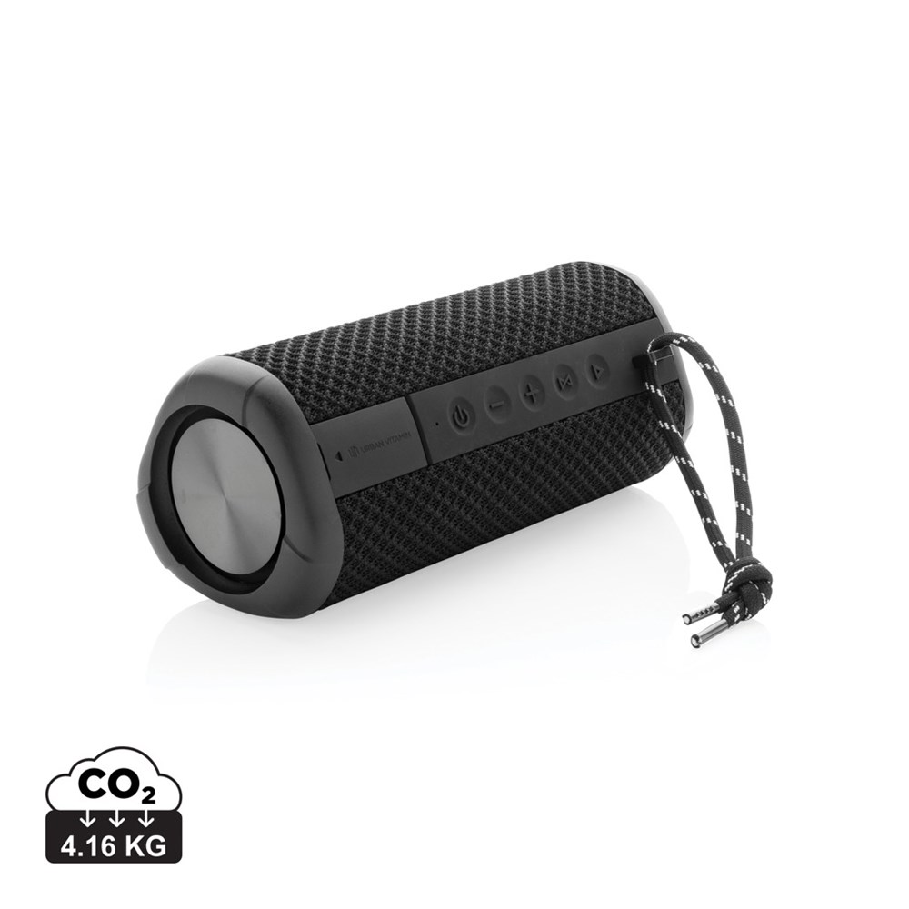 Neem je luidspreker overal mee naartoe. Uitwaaien op het strand? Perfect! Feestje bij het zwembad? Een spetterende fuif! Plotselinge regen? Geen zorgen! Je speaker is IPX7 waterdicht tot 1 meter diep en max 30 minuten! Na een zanderige dag op het strand gewoon afspoelen onder de douche. De 10W-luidspreker heeft een enorme bas die wordt ondersteund door twee subwoofers aan beide uiteinden van de luidspreker. Het krachtige geluid is genoeg om een groot feest gaande te houden tot de zon opkomt. Het fabric en sterke behuizing zorgen er zelfs voor dat de speaker tegen een stootje kan. Geniet van tot wel 15 uur speeltijd! Als u een oproep ontvangt, beantwoordt u deze gewoon met de geïntegreerde microfoon in heldere kwaliteit. Urban Vitamin items zijn gemaakt zonder PVC en verpakt in plastic gereduceerde verpakking.