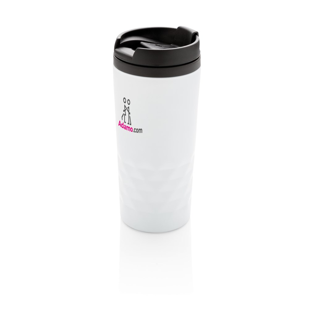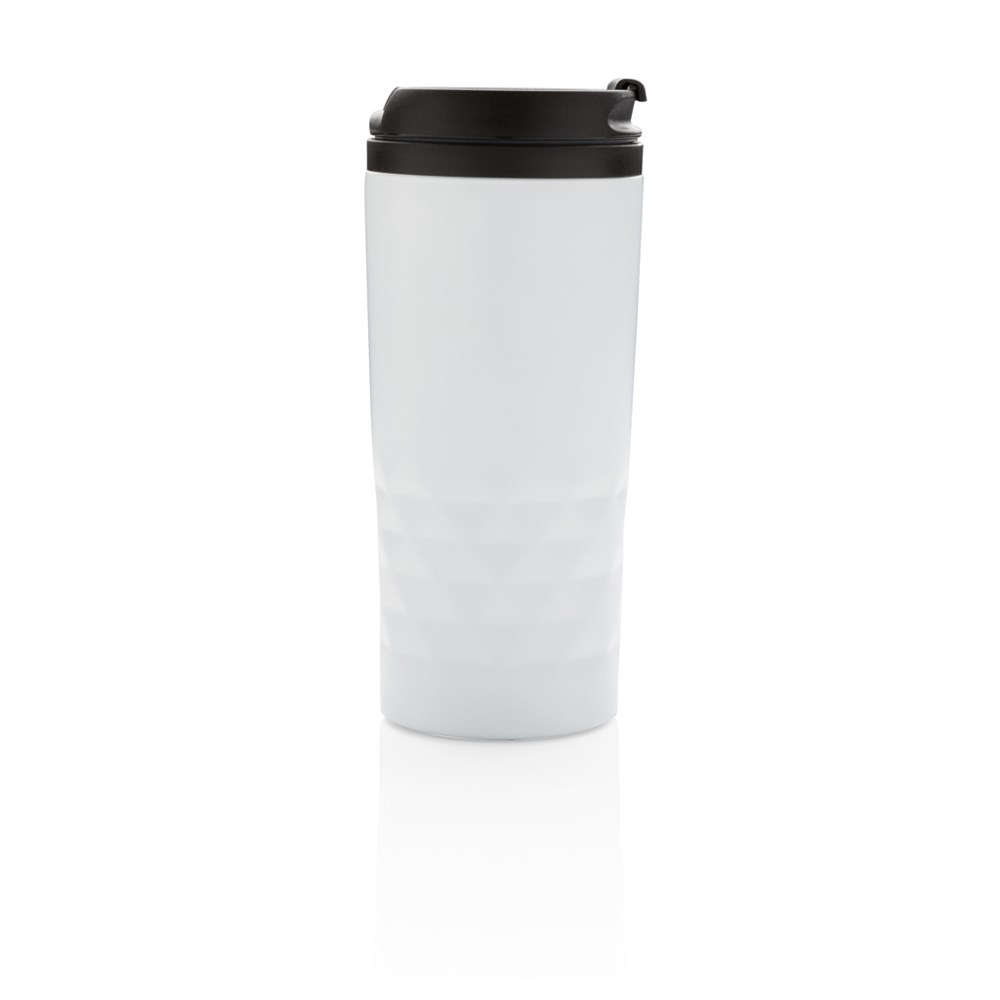 Trendy roestvrijstalen mok met geometrisch patroon. PP binnenzijde. Met de hand afwasbaar. Inhoud 300ml.