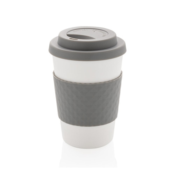 Stop met het gebruik van wergwerpartikelen! Breng je eigen beker mee en draag bij aan een wereld zonder wegwerpartikelen. Deze lichtgewicht en duurzame bekers zijn perfect voor je koffie onderweg. 100 graden Celsius voedselveilig goedgekeurd. Met siliconen deksel en sleeve. Geschikt voor de vaatwasser en magnetron. Past gemakkelijk onder de meeste koffiemachines. Inhoud: 270 ml.