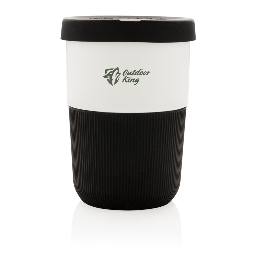 Een duurzaam alternatief voor traditionele bekers! Deze PLA-koffiekop is stijlvol en praktisch in de ochtend en is ideaal voor het vervoeren van uw favoriete warme drank. Vervaardigd uit plantaardig materiaal (PLA), dus niet alleen stijlvol maar ook vriendelijk voor de planeet. Wordt geleverd met een siliconen grip en deksel voor uw gemak. 100% melamine vrij. Capaciteit 380 ml.