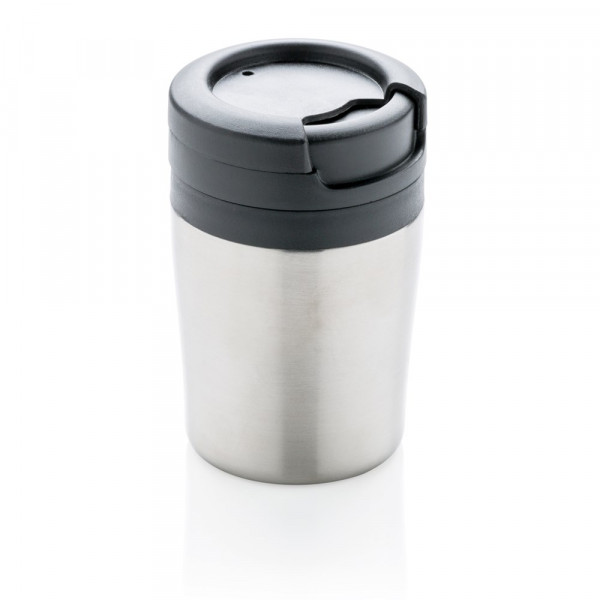 Less is more. Met zijn 8cm hoogte is dit de perfecte dubbel wandige mok voor je koffiemachine. PP binnenkant. Ideaal voor Ristretto, Espresso en Lungo koffie. Gemakkelijke draai-deksel. Kan niet in de vaatwasser. Inhoud 160ml. Geregistreerd ontwerp®