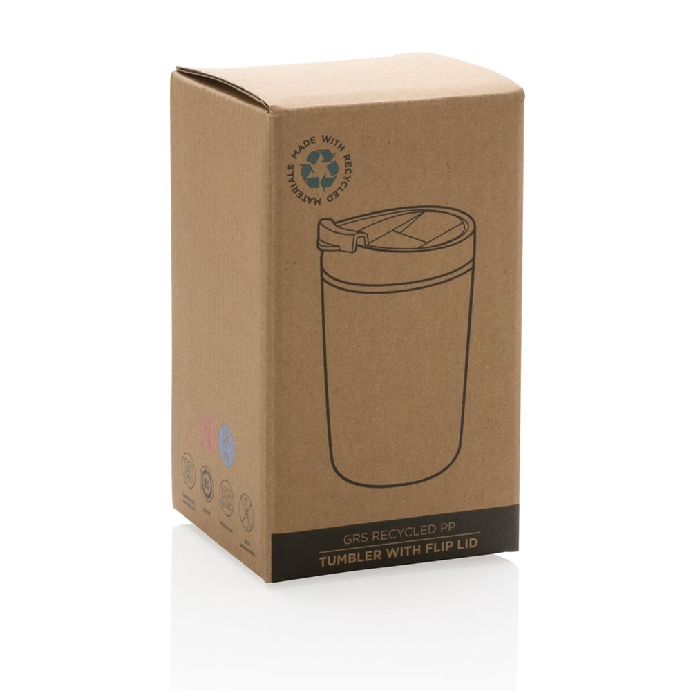 Deze beker is gemaakt van GRS-gecertificeerd gerecycled PP. GRS-certificering zorgt voor een volledig gecertificeerde toeleveringsketen van de gerecyclede materialen. De beker is voorzien van een klapdeksel zodat je er gemakkelijk onderweg van kunt nippen. Totaal gerecycled materiaal: 35% op basis van het totale gewicht van het item. Handwas wordt aanbevolen. BPA-vrij. Capaciteit 300ml. Een FSC®-gecertificeerde kraftverpakking is inbegrepen.