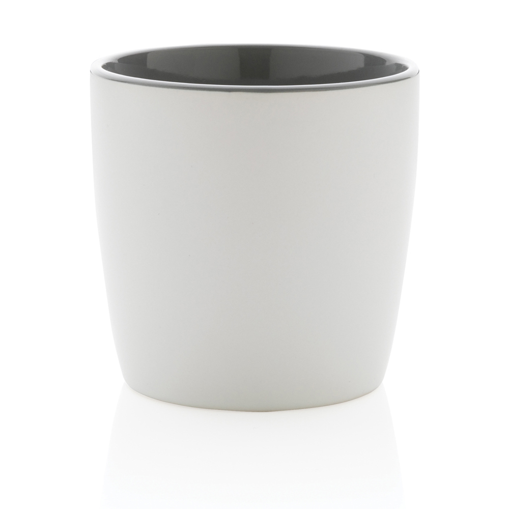 Deze keramische mok heeft een fris design met een matte afwerking aan de buitenkant en een kleuraccent aan de binnenkant. De mok is vaatwasmachinebestendig en getest volgens EN12875-1 (minstens 125 wasbeurten voor alle decoratiemethodes). Verpakt in een kraft geschenkdoos. Capaciteit 300ml.
