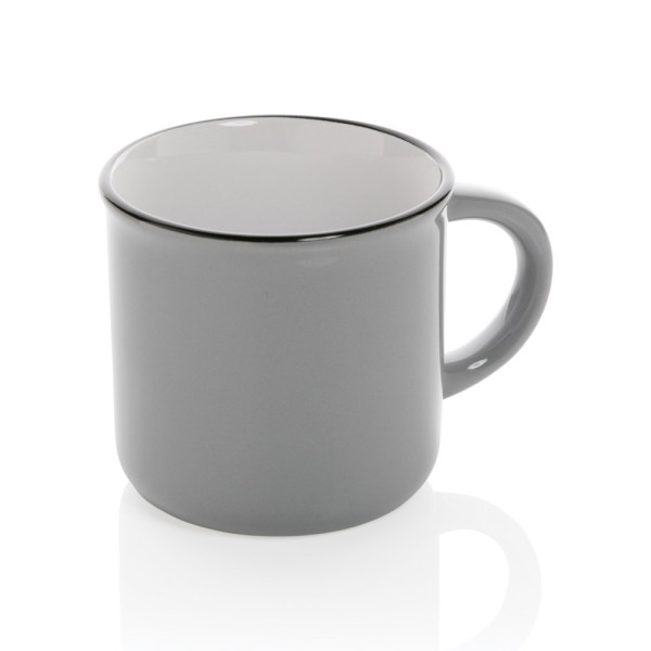 Deze mok is gemaakt van keramiek voor duurzaamheid en langdurig gebruik. De mok heeft een vintage look en is voorzien van een gebogen handvat voor een gemakkelijke grip. De mok is vaatwasmachinebestendig en is getest in overeenstemming met EN12875-1 (minimaal 125 wasbeurten) voor alle decoratiemethoden. Verpakt in een geschenkdoos. Capaciteit 280 ml.