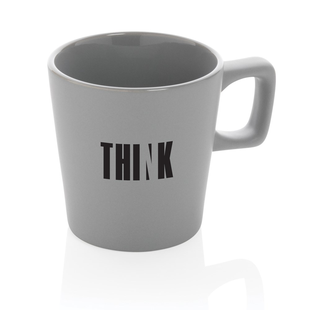 Deze mok van keramiek staat mooi op elk bureau. De mok heeft een glanzende binnenkant en een matte buitenkant. De mok is vaatwasmachinebestendig en is getest in overeenstemming met EN12875-1 (minimaal 125 wasbeurten) voor alle decoratiemethoden. Verpakt in geschenkdoos. Capaciteit 300 ml.