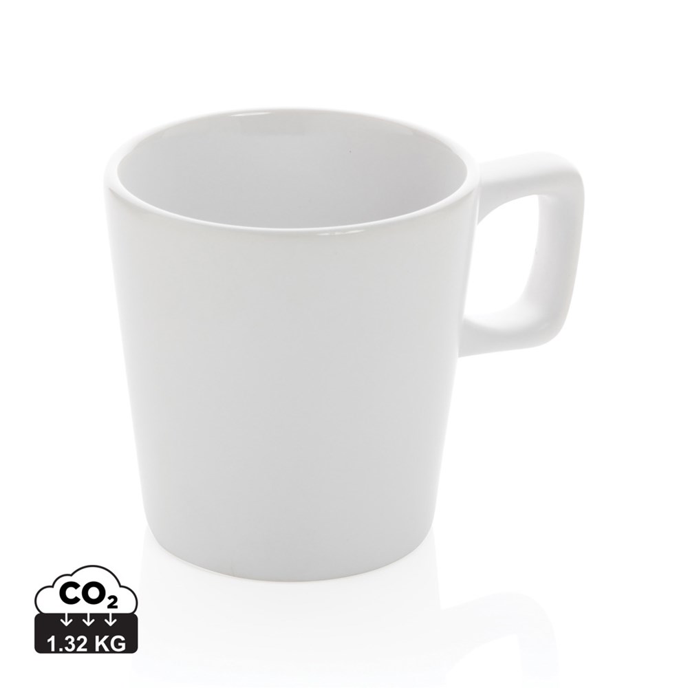 Deze mok van keramiek staat mooi op elk bureau. De mok heeft een glanzende binnenkant en een matte buitenkant. De mok is vaatwasmachinebestendig en is getest in overeenstemming met EN12875-1 (minimaal 125 wasbeurten) voor alle decoratiemethoden. Verpakt in geschenkdoos. Capaciteit 300 ml.