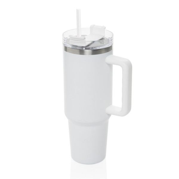 Maak kennis met Peakflow, de ultieme 1200 ml tumbler voor wie net wat meer nodig heeft. Met een comfortabele handgreep en slanke basis is hij gemakkelijk mee te nemen en past hij in de meeste bekerhouders, zodat je onderweg gehydrateerd blijft. Buitenkant gemaakt van duurzaam gerecycled roestvrij staal, houdt Peakflow met zijn dubbelwandige, vacuümgeïsoleerde ontwerp je drankjes op de perfecte temperatuur. Hij is voorzien van een morsbestendige deksel met dubbele functie: direct drinken of gebruik de meegeleverde plastic rietje. RCS-gecertificeerd, met 29% gerecycled materiaal en BPA-vrij. Perfect praktisch en milieuvriendelijk, handwas aanbevolen. Bulk verpakt.