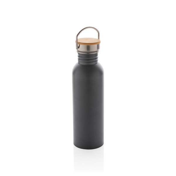 Een drinkfles die mooi is door zijn eenvoud. Deze moderne enkelwandige roestvrijstalen fles is voorzien van een roestvrijstalen deksel afgewerkt met prachtig bamboe. Met een roestvrijstalen handgreep voor gemakkelijk dragen. Capaciteit 710 ml. BPA-vrij. Met de hand afwassen.