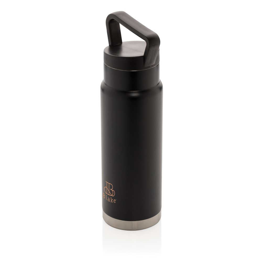 Gemaakt van hoogwaardig roestvrij staal, deze unieke fles heeft ook een dubbele isolatie om je drankje 15 uur koud te houden of maximaal 5 uur warm te houden. Het handvat bovenop het deksel maakt het gemakkelijk om het overal mee naartoe te nemen. Capaciteit 650 ml. BPA-vrij.
