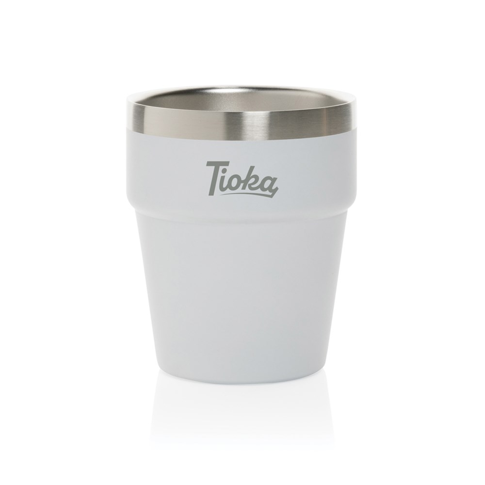Dubbelwandige stalen beker, ideaal voor koffiemachines. Gemaakt van 100% RCS-gecertificeerd staal. RCS-certificering waarborgt een volledig gecertificeerde toeleveringsketen van gerecyclede materialen. Alleen met de hand afwassen. Totaal gerecyclede inhoud: 100% op basis van het totale gewicht van het artikel. Vrij van BPA. Inhoud: 300 ml. Inclusief FSC®-gecertificeerde kraft geschenkverpakking.