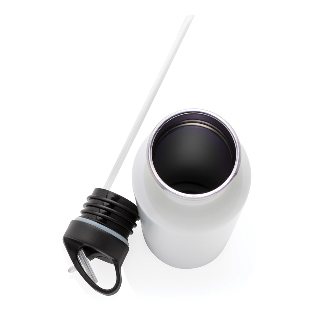 Deze fles heeft een sportdop voor snelle slokjes tijdens het sporten of de spits! Perfecte maat en lichtgewicht herbruikbare fles is gemaakt van 18/8 duurzaam roestvrij staal. Alleen aanbevolen voor koud water. Inhoud: 710 ml.