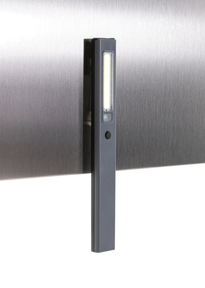 Zakformaat inspectielamp gemaakt van RCS-gecertificeerd gerecycled ABS-plastic. Totale gerecyclede inhoud: 33% op basis van het totale gewicht van het artikel. RCS-certificering garandeert een volledig gecertificeerde toeleveringsketen van de gerecyclede materialen. De inspectielamp maakt gebruik van een oplaadbare A-klasse 520 mAh lithiumbatterij, dus je hoeft de batterijen niet te vervangen. Gewoon opladen via je USB-poort. De inspectielamp wordt geleverd met een 220 lumen COB-licht en een 80 lumen LED-licht. Met 3 modi: LED, COB en COB rood. Met clip om aan een riem of zak te bevestigen en een magneet. Met type C-poort voor opladen. Gebruikstijd op één lading: 3 uur
