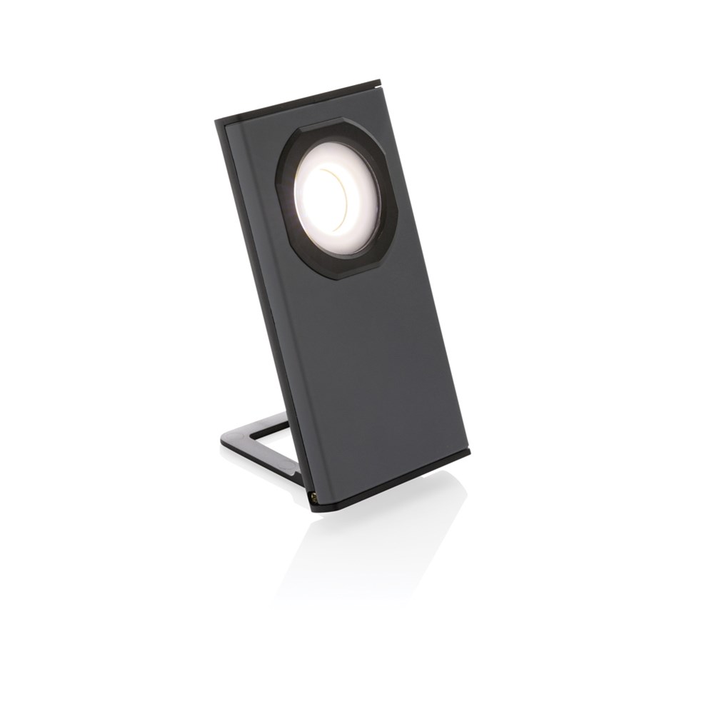Zakformaat werklamp met superheldere COB-verlichting gemaakt van RCS-gecertificeerd gerecycled ABS-plastic. Totale gerecyclede inhoud: 36% op basis van het totale gewicht van het artikel. RCS-certificering garandeert een volledig gecertificeerde toeleveringsketen van gerecyclede materialen. De werklamp maakt gebruik van een oplaadbare A-klasse 900 mAh lithiumbatterij, dus er is geen behoefte aan het vervangen van batterijen. Eenvoudig op te laden via uw USB-poort. Het werklicht is uitgerust met 260 lumen COB-verlichting. Met 2 modi: COB en COB 50%. Met een magneet aan de achterkant. Met standfunctie. Met type C-poort voor opladen. Bedrijfstijd op één lading: 3 uur