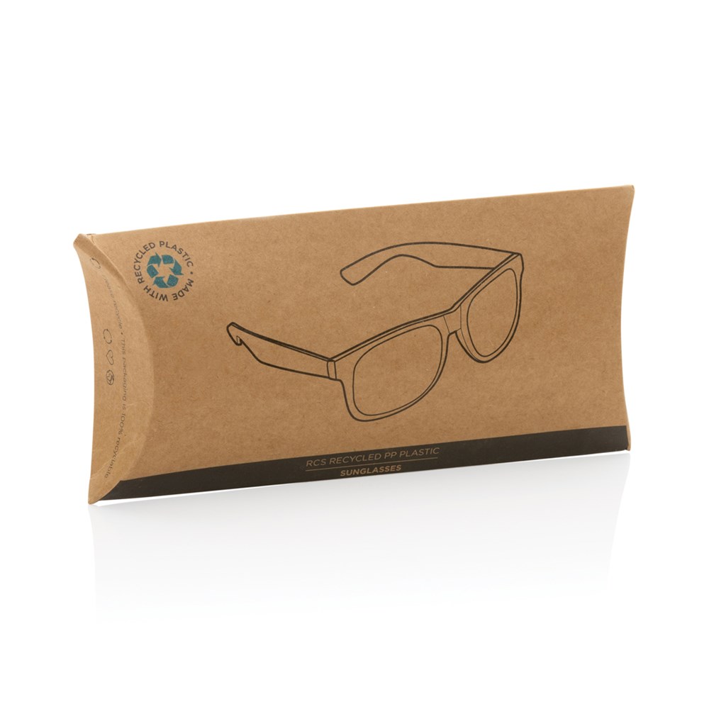 Zonnebril gemaakt met GRS-gecertificeerd gerecycled PP-frame. De gerecyclede inhoud van het frame is 100%. Totaal gerecycled materiaal: 66% op basis van het totale gewicht van het item. GRS-certificering zorgt voor een volledig gecertificeerde toeleveringsketen van de gerecyclede materialen. De lenzen zijn van smokey acryl en voldoen aan EN ISO 12312-1, UV 400 en CAT 3. Verpakt in een FSC® kraft sleeve.