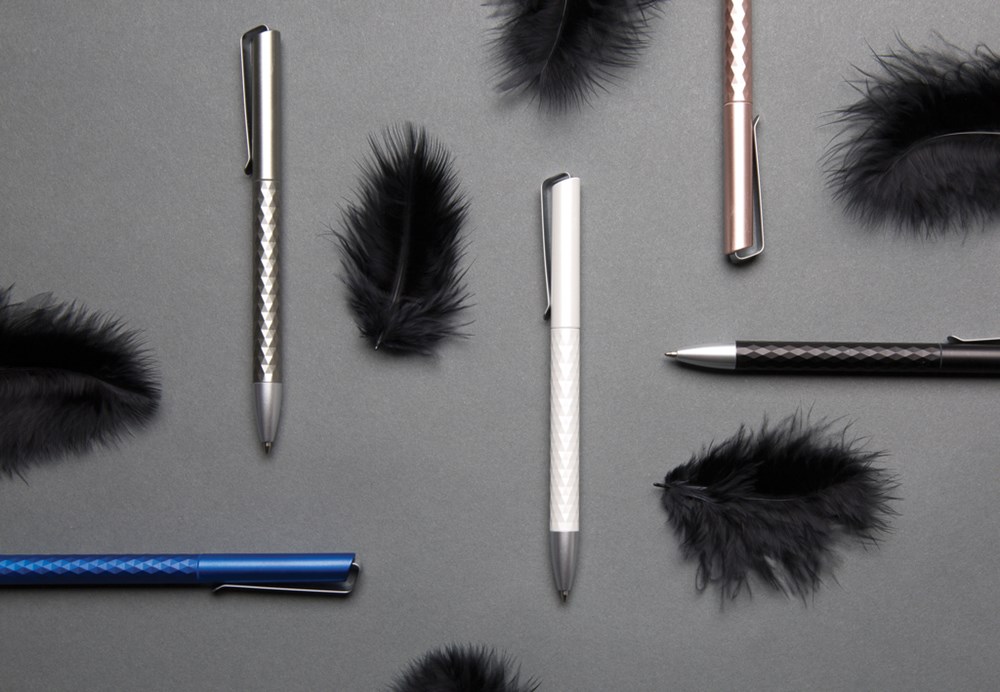 Unieke balpen met metalen clip met fascinerend diamantpatroon. Inclusief Duitse Dokumental® inktvulling in blauw (ca. 1200 m schrijflengte) met TC-ball voor ultra-vloeiend schrijfplezier. De pen is vervaardigd uit 38% gerecycled ABS.