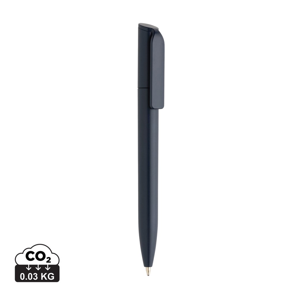 Deze compacte minipen is gemaakt van GRS-gecertificeerd gerecycled ABS en biedt zowel stijl als functionaliteit. Met een twist-action mechanisme en blauwe Dokumental-inkt zorgt het voor een soepele schrijfervaring. Schrijfbreedte 1 mm, schrijflengte 800 meter. Totaal gerecycled materiaal: 54% op basis van het totale gewicht van het item.