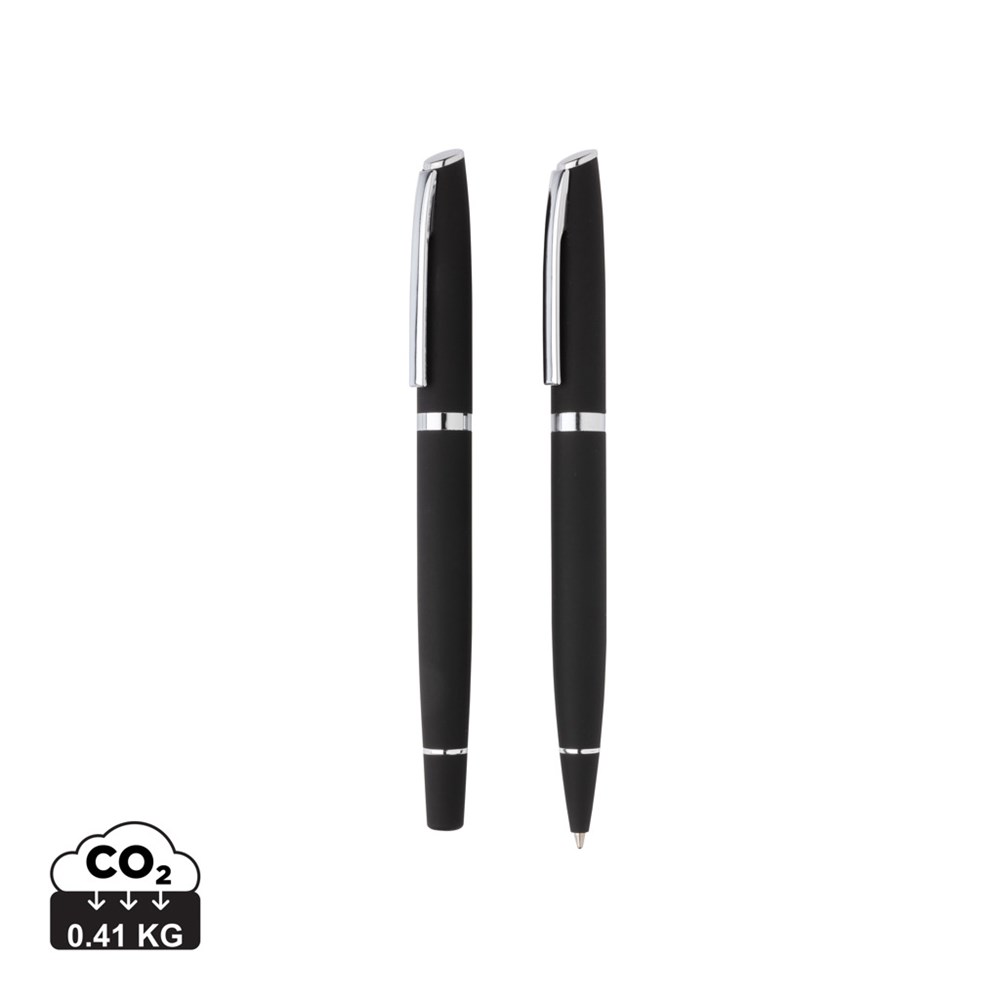 Eenvoudig maar elegant. Dankzij de matte afwerking heeft deze luxe pennenset een luxueus gevoel en voelt zeer aangenaam aan. De set bestaat uit een balpen en een rollerball. Beide pennen bevatten Duitse Dokumental®-inkt voor ultraglad schrijven. Schrijflengte voor de pen is 1200 meter, voor de rollerpen 400 meter. Wordt geleverd in een bijpassende geschenkdoos.