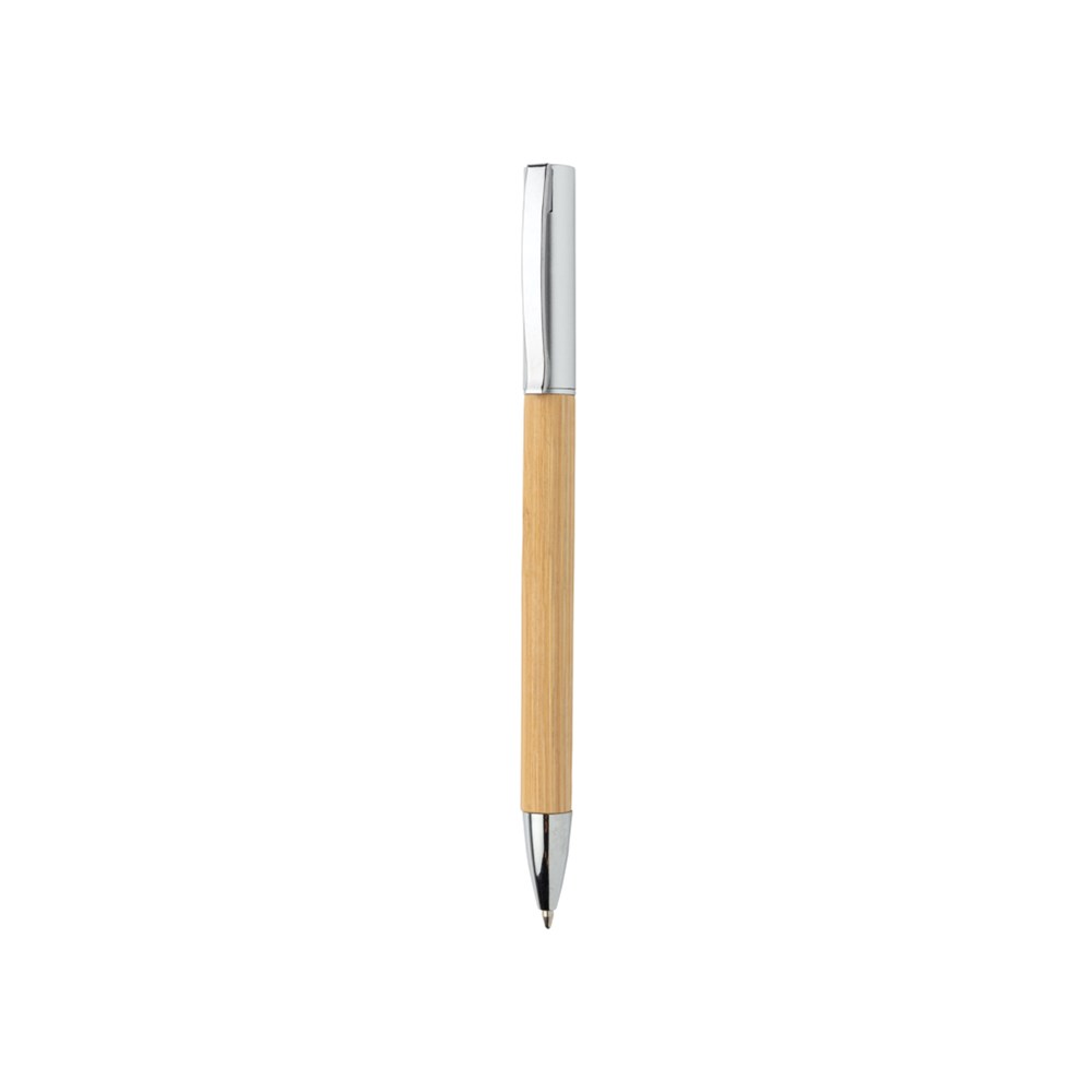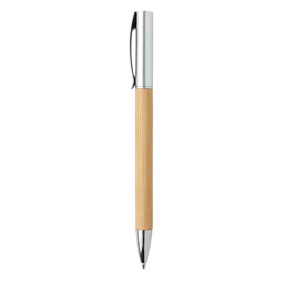 Combineer moderne stijl met uitstekend schrijfcomfort. Deze twist-action pen is gemaakt van bamboe en ABS met een matte metalen afwerking op de dop. De pen wordt geleverd met blauwe Duitse Dokumental® inkt, schrijflengte 1200 meter.