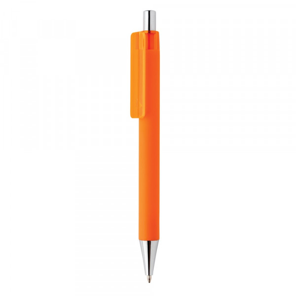 Een nieuw verfijnd lid van de X-pen familie met een nieuwe look met chromen accenten. Met smooth touch coating voor extra schrijfcomfort. Perfect voor het overbrengen van uw merkboodschap. Inclusief ca. 1200 m schrijflengte Duitse Dokumental® blauwe inktvulling met TC-ball voor ultra soepel schrijven. De pen is vervaardigd uit 55% gerecycled ABS.