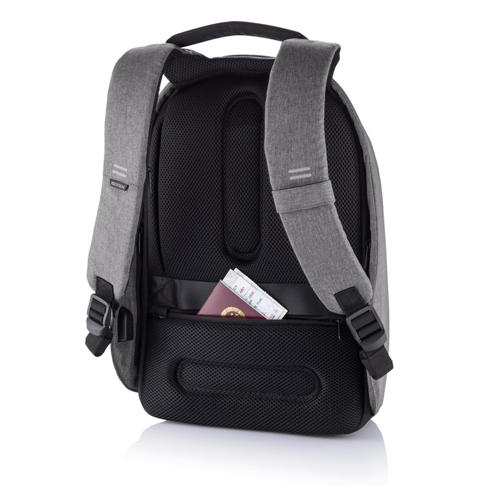 De Bobby Hero lijn is onze nieuwe generatie anti-diefstal rugzakken. Dit nieuwe model helpt u om altijd veilig, zorgeloos en georganiseerd te reizen. Het snijvaste en waterafstotende materiaal waar de tas van gemaakt is en de verborgen ritssluitingen & zakken houden uw spullen veilig terwijl u onderweg bent. Bobby Hero is ook een heel handige rugzak met functies zoals een geïntegreerde USB-laadpoort, oplichtende veiligheidsstrips en een bagageband. Aan de binnenkant zitten gewatteerde compartimenten voor een 17" laptop, tablet tot 12,9" en al uw andere spullen. De rugzak is gemaakt van 35 rPET (gerecyclede PET-flessen). Geregistreerd ontwerp®