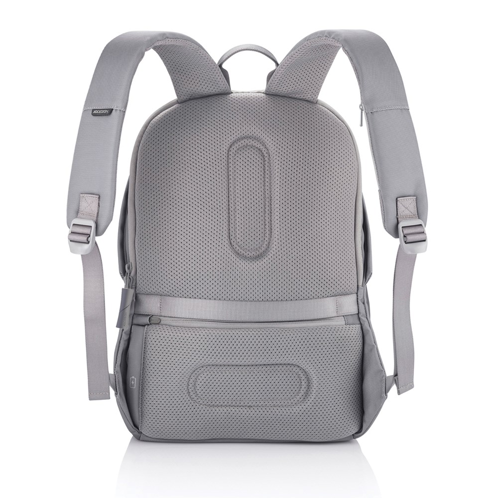 Naar de universiteit, naar school, naar het werk of op vakantie? Bobby Soft is er klaar voor! Het iconische Bobby anti-diefstal ontwerp met verborgen en RFID-beschermde vakken en verborgen ritsen is aangevuld met een veilige ritssluiting op het hoofdcompartiment om uw spullen nog beter te beschermen. Het ruime interieur is veelzijdig en handig. In het hoofdcompartiment kunt u uw spullen gemakkelijk ordenen met een gewatteerd 15,6" laptopcompartiment, diverse slimme kleine zakken en een sleutelhangerclip. De bovenkant van de rugzak is flexibel, waardoor er extra ruimte ontstaat voor het opbergen van kleding, boeken of wat u maar nodig heeft. De rugzak is uitgerust met een geïntegreerde USB-oplaadpoort en gemaakt van waterafstotend materiaal. Bobby Soft is gemaakt van gerecycled materiaal – er worden 39 oude plastic flessen gebruikt er wordt 23L water bespaart tijdens de productie van elke rugzak. Een rugzak die past bij elke stijl. Geregistreerd ontwerp®