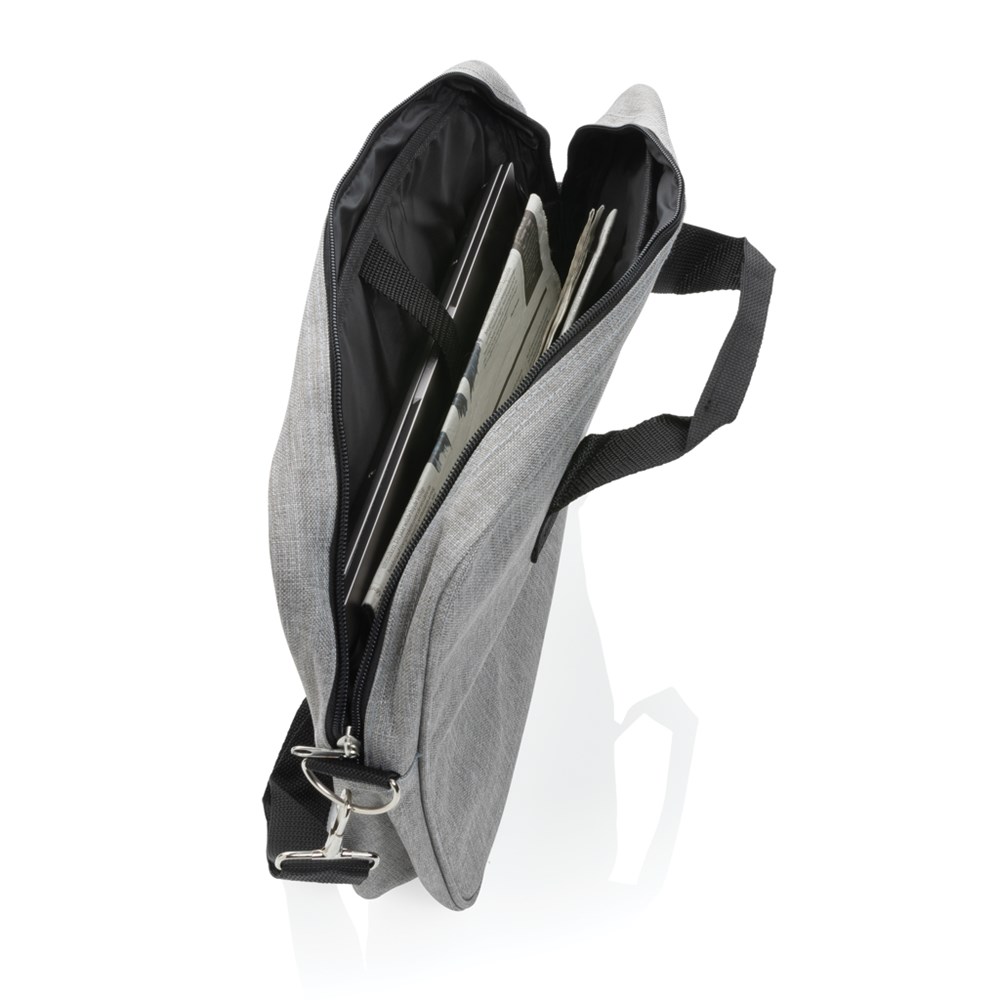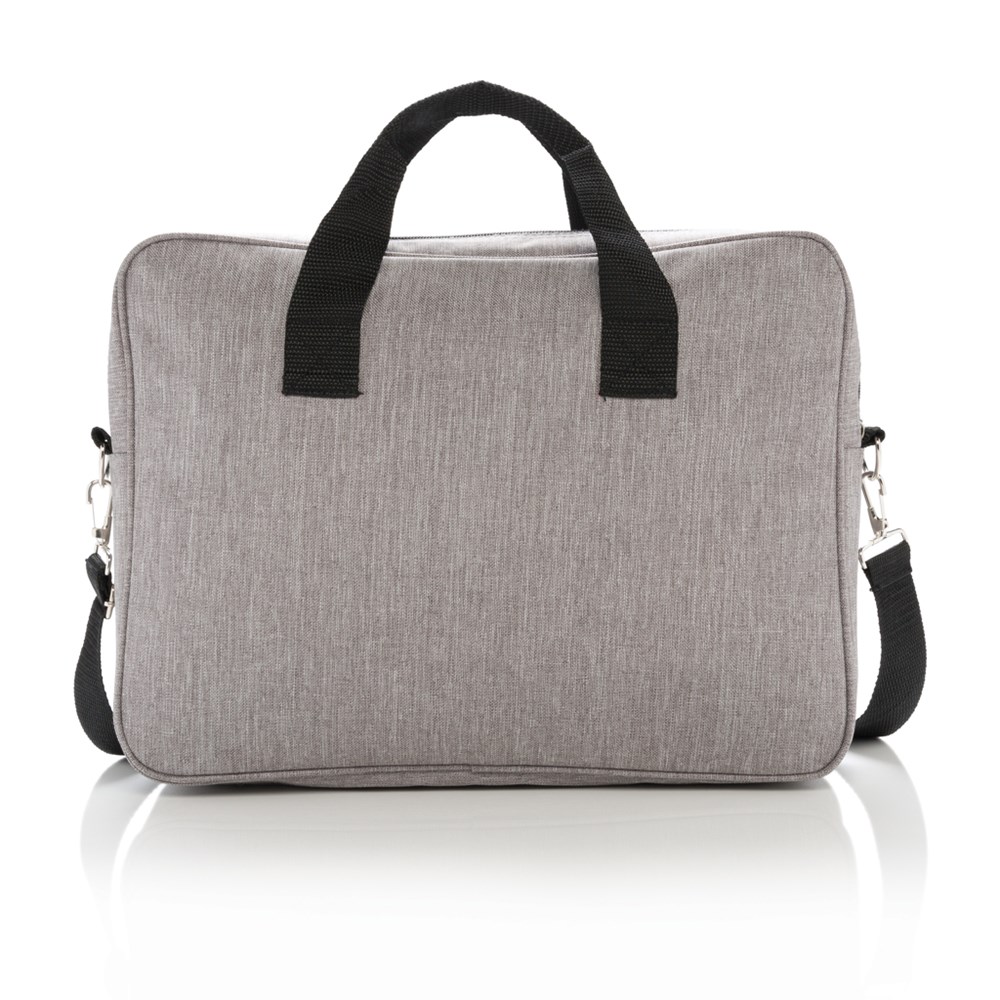 Draag uw laptop in de stad voor het dagelijkse woon-werkverkeer naar school of werk in deze basic 15” 600D polyester laptoptas. PVC-vrij.