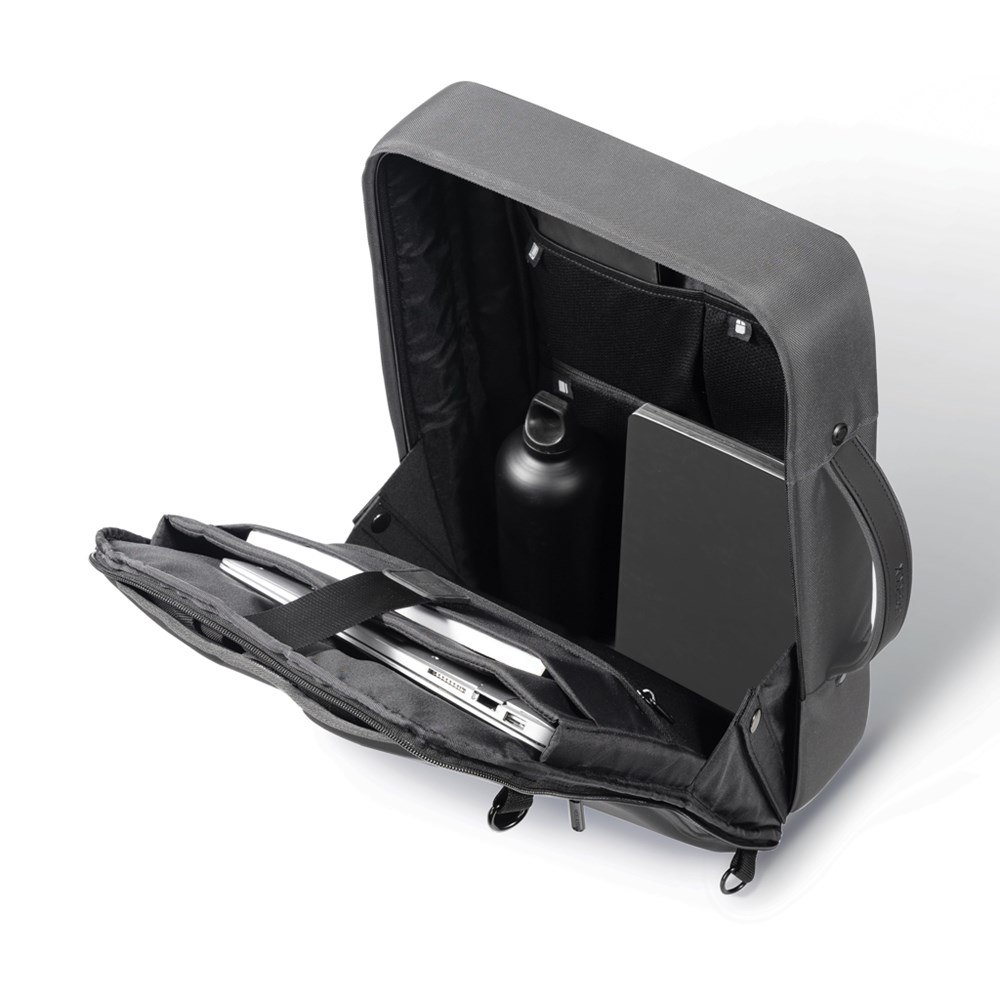 Houd je spullen veilig en maak je woon-werkverkeer stijlvoller met de nieuwe Bobby Bizz 2.0-rugzak. Klaar voor elke zakelijke gelegenheid, je kunt deze rugzak in een paar seconden omtoveren tot een atetas, gewoon door de schouderbanden in de achterzak te doen.Om jou en je spullen veilig te houden, heeft het iconische Bobby antidiefstalontwerp geen toegang aan de voorkant, verborgen ritsen en een verborgen RFID-beschermd vak. Het is versterkt met snijbestendig materiaal en een ingebouwd metalen frame. Je kunt je Bobby Bizz 2.0 ook veilig aan elk vast object vastmaken met het geïntegreerde slot van zinklegering in de rechter riem. In het interieur zijn er gewatteerde vakken voor een 16” laptop, een tablet tot 10”, en al je professionele spullen. De Bobby Bizz 2.0 is gemaakt van gerecyclede materialen.