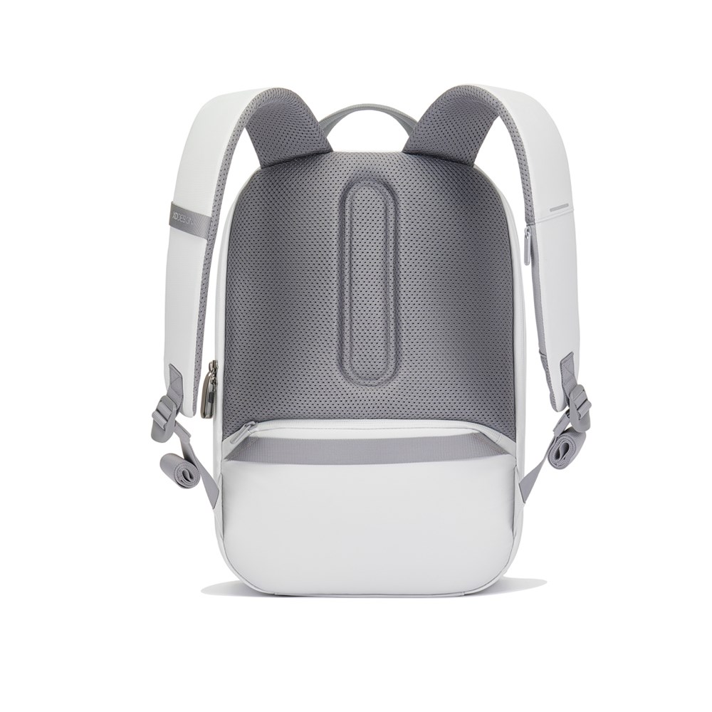 Het iconische Bobby anti-diefstal ontwerp met verborgen en RFID-beschermde vakken en verborgen ritsen is aangevuld met verbeterde functies voor de veiligheid, in een eigentijds ontwerp. Achter de zelfsluitende metalen ritstrekker, zijn je spullen nog veiliger. De lichtgewicht maar stevige constructie, met een waterafstotende buitenkant en waterdichte rits, zorgt voor bescherming tegen de elementen. Door de slimme organisatie aan de binnenkant heb je makkelijk toegang tot essentiële spullen. De toevoeging van een verborgen vakje voor het opbergen van een bluetooth tracker vergroot de veiligheid tijdens je dagelijkse avonturen. De Bobby Edge combineert een modern ontwerp met geavanceerde beveiligingsfuncties en biedt een stijlvolle en veilige reis voor de moderne ontdekkingsreiziger. De rugzak is waterafstotend en gemaakt van gerecyclede materialen. Met AWARE™ tracer die het echte gebruik van gerecyclede materialen valideert. Gerecyclede content 14% obv het totale gewicht.