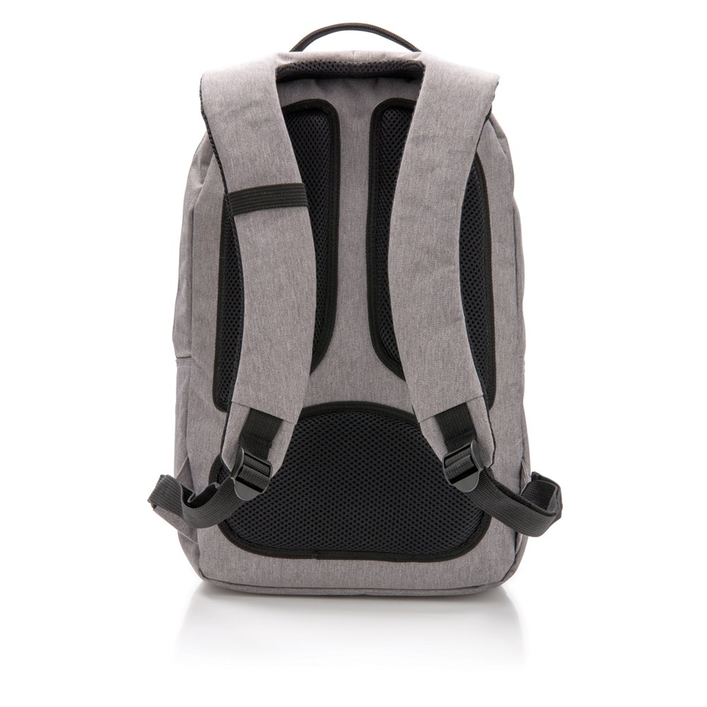 Perfect voor werk en vrije tijd. Deze 600D rugtas is stijlvol en bied slimme opbergoplossingen voor je belangrijkste spullen. Belangrijk kenmerken zijn het 15” laptopcompartiment en het tabletcompartiment. De rugtas heeft verstelbare schouderbanden en een gevoerd achterpaneel voor extra draagcomfort. Deze rugzak heeft een ruim voorvak, voor bijvoorbeeld uw schoenen of sportaccessoires.
