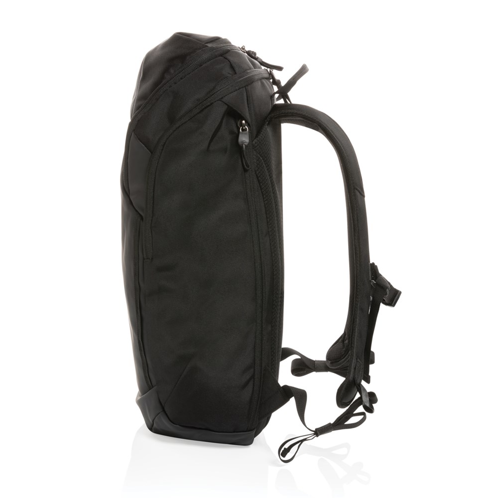 Swiss Peak AWARE™ RPET 15,6 inch business rugzak is een waterbestendige rugzak voor werk en dagelijkse avonturen. De rugzak heeft een ruim hoofdvak en on-the-go quick access tot je laptop via de zijrits. Comfortabel om te dragen dankzij de voorgevormde, ademende schouderbanden, het gewatteerde achterpaneel en de volledig verstelbare borstband. Een ritsvak aan de bovenkant voor al je dagelijkse benodigdheden. De buitenkant is gemaakt van PU en 1200D gerecycled polyester. De voering is gemaakt van 100% 150D gerecycled polyester. Met AWARE™ tracer die het echte gebruik van gerecyclede materialen valideert. Elke tas heeft 38,19 0,5L PET-flessen hergebruikt. 2% van de opbrengst van elk verkocht product dat AWARE™ bevat, wordt gedoneerd aan Water.org.