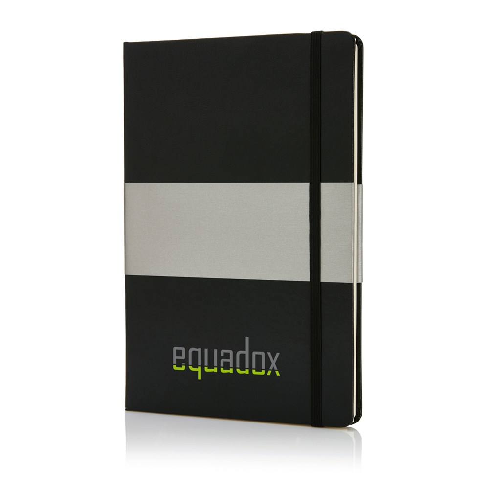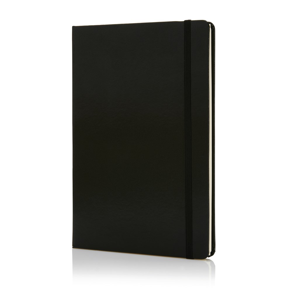 Notitieboek met 160 pagina’s 80 grams gelinieerd papier, een pagina indicator en een elastische band.