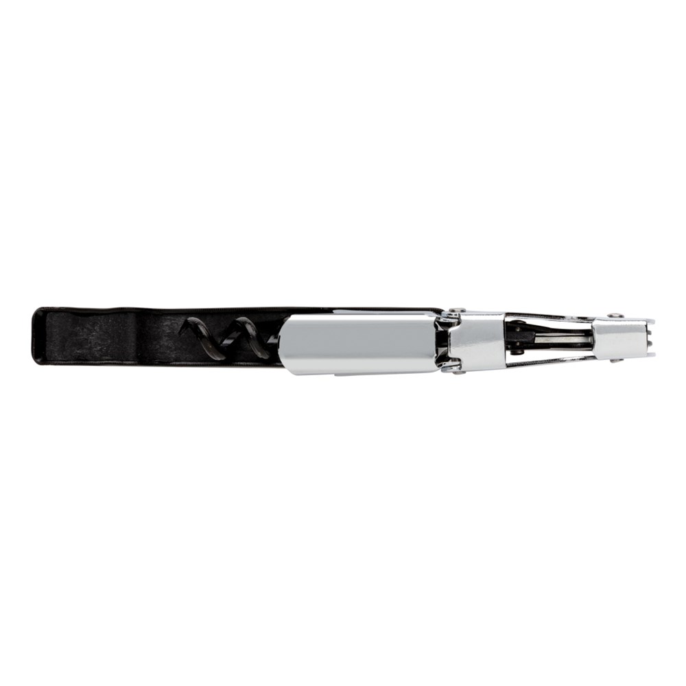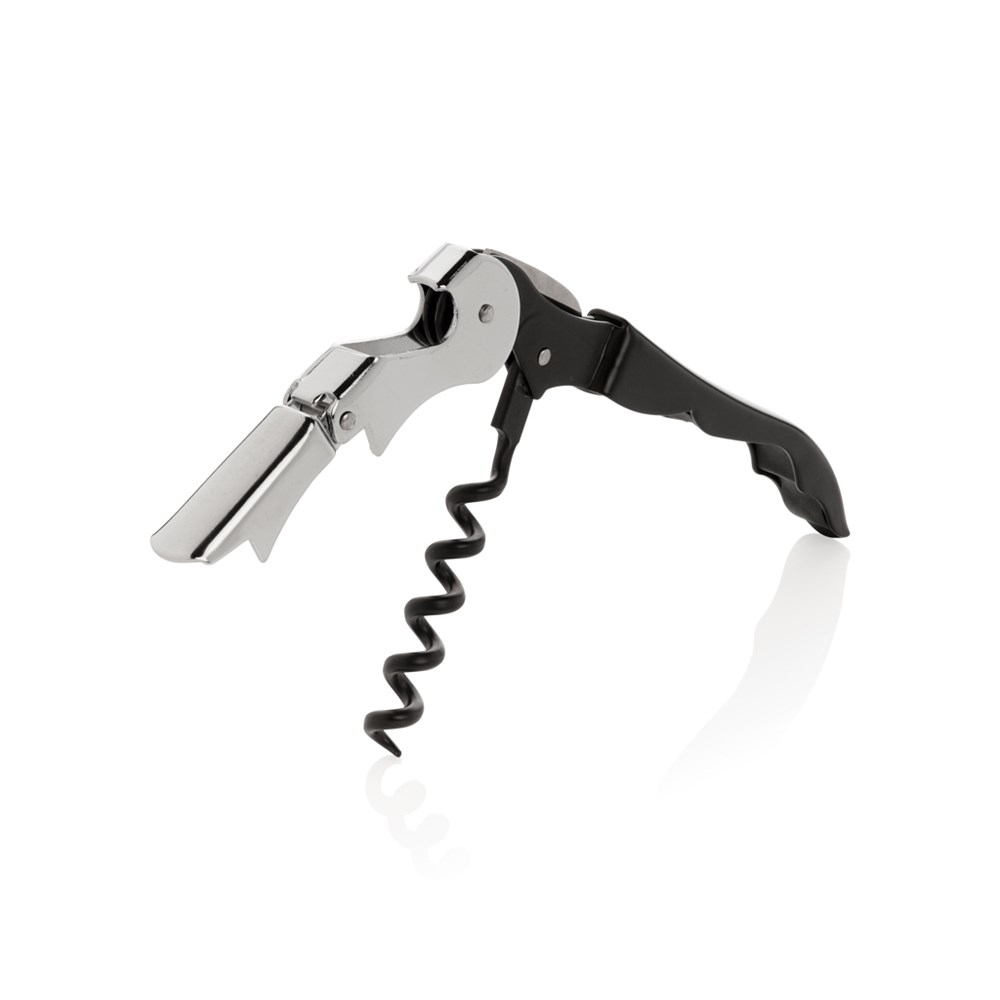 Deze kurkentrekker is een klassiek ontwerp met een foliesnijmes, een tweetraps kurkheffer en flesopener. Verpakt in geschenkverpakking.