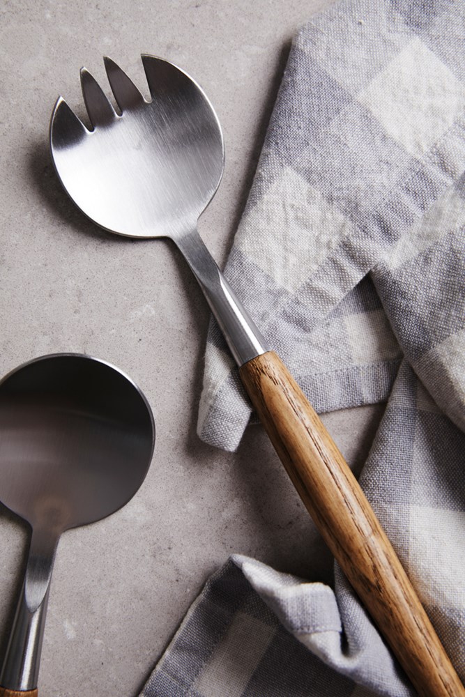 Roestvrijstalen serveerbestek met handvaten van eikenhout. Een klassiek en minimalistisch design in pure Scandinavische stijl. Het keukengerei is perfect voor diners en speciale maaltijden thuis. Verpakt in een exclusieve geschenkverpakking.