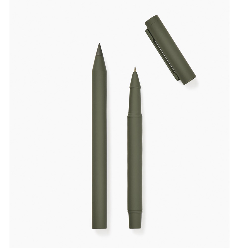 Deze moderne en stijlvolle set bestaat uit twee pennen: een eeuwigschrijvende pen en een klassieke balpen met dop en clip. Deze pennen zijn gemaakt van RCS gecertificeerd gerecycled roestvrij staal, met een rubberen coating voor een comfortabele grip en een matte afwerking. Beide pennen hebben een uitgebalanceerd gewicht dat zorgt voor stabiliteit en moeiteloos schrijven. Met de eeuwige pen kun je eindeloos schrijven. De balpen heeft een fijne punt van 1,00 mm en schrijft soepel en consistent met documental blauwe inkt, die tot 1200 meter meegaat. Gecertificeerd door RCS (Recycled Claim Standard), RCS-certificering garandeert de hele toeleveringsketen van gerecyclede materialen. De totale gerecyclede inhoud is gebaseerd op het totale productgewicht. Dit product bevat 52% RCS-gecertificeerd gerecycled aluminium en 10% RCS-gecertificeerd roestvrij staal.