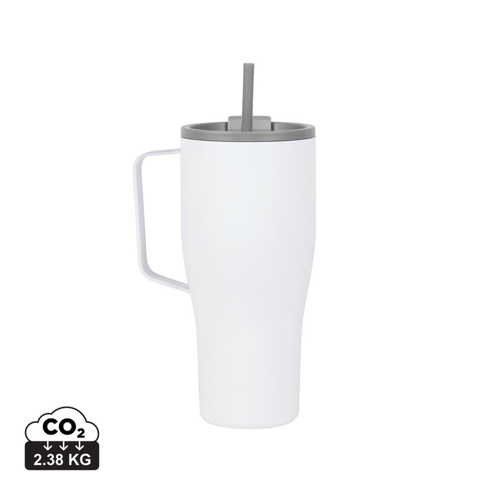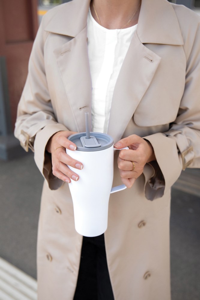 Een slanke en duurzame vacuümfles, gemaakt van gerecycled roestvrij staal. Met zijn stijlvolle ontwerp, handige metalen handgreep en een rietje, is deze fles niet alleen een hydratatiepartner, maar ook een statement voor je dagelijkse avonturen. Of je nu naar je werk pendelt, boodschappen doet of de natuur verkent, de Eos Voyager is jouw perfecte metgezel. De dubbelwandige isolatie houdt je drankje tot 24 uur koud en tot 6 uur warm, zodat je de hele reis verfrist blijft. Lekvrij. Niet vaatwasser- of magnetronbestendig, alleen met de hand afwassen. Inclusief FSC®-gecertificeerde kraftverpakking. Gecertificeerd door RCS (Recycled Claim Standard), waarbij RCS-certificering garandeert dat de gehele toeleveringsketen van gerecyclede materialen gecertificeerd is. Het totale gerecyclede gehalte is gebaseerd op het totale productgewicht. Dit product bevat 79% RCS-gecertificeerd gerecycled roestvrij staal.