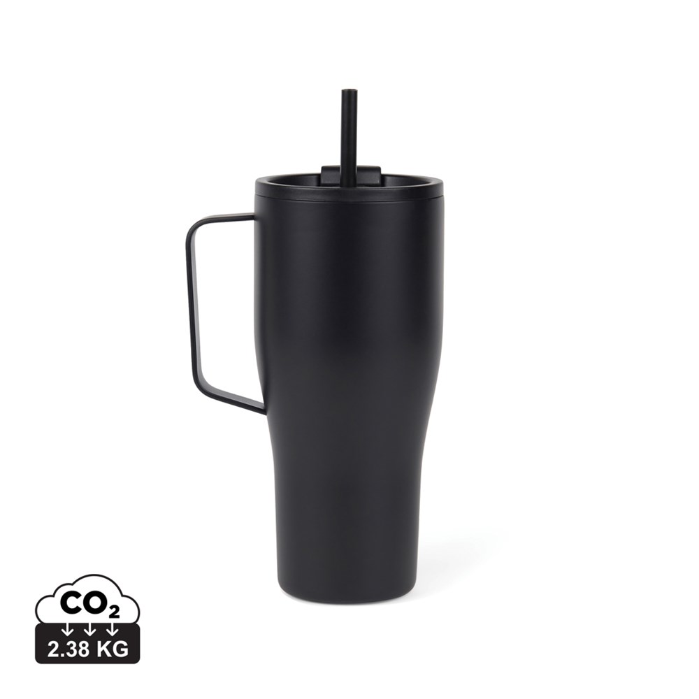 Een slanke en duurzame vacuümfles, gemaakt van gerecycled roestvrij staal. Met zijn stijlvolle ontwerp, handige metalen handgreep en een rietje, is deze fles niet alleen een hydratatiepartner, maar ook een statement voor je dagelijkse avonturen. Of je nu naar je werk pendelt, boodschappen doet of de natuur verkent, de Eos Voyager is jouw perfecte metgezel. De dubbelwandige isolatie houdt je drankje tot 24 uur koud en tot 6 uur warm, zodat je de hele reis verfrist blijft. Lekvrij. Niet vaatwasser- of magnetronbestendig, alleen met de hand afwassen. Inclusief FSC®-gecertificeerde kraftverpakking. Gecertificeerd door RCS (Recycled Claim Standard), waarbij RCS-certificering garandeert dat de gehele toeleveringsketen van gerecyclede materialen gecertificeerd is. Het totale gerecyclede gehalte is gebaseerd op het totale productgewicht. Dit product bevat 79% RCS-gecertificeerd gerecycled roestvrij staal.