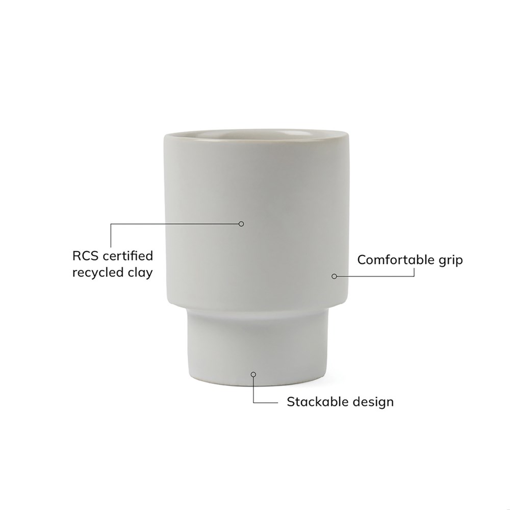 Geniet extra van je koffie of thee met de Nagano pure mok, die gedeeltelijk gemaakt is met gerecyclede klei. Deze mok combineert eenvoud met een moderne twist en belichaamt de essentie van Scandinavisch design. Het stapelbare ontwerp zorgt voor efficiënt ruimtegebruik, waardoor het een praktische toevoeging is aan elke keuken. Met een comfortabele grip die perfect in de hand ligt. RCS-certificering garandeert een volledig gecertificeerde toeleveringsketen van de gerecyclede materialen. Totaal gerecycled materiaal: 10% gebaseerd op het totale productgewicht.