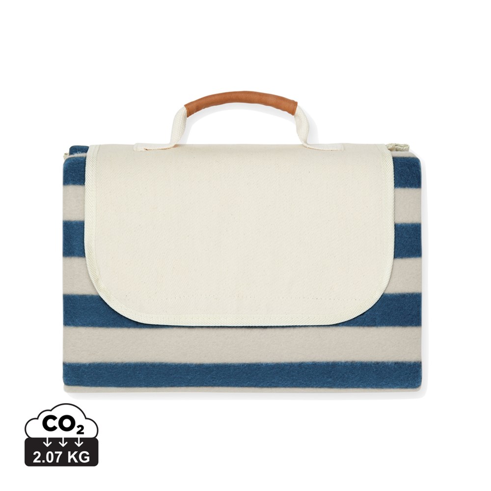 Picknickdeken van zacht fleece met katoencanvas en details van imitatieleer. Het fleecemateriaal is gemaakt van GRS-gecertificeerd rPET. De GRS-certificering garandeert een volledig gecertificeerde toeleveringsketen van de gerecyclede materialen. De achterkant is gemaakt van PEVA, dat waterafstotend is. Door de slimme constructie is de deken gemakkelijk op te vouwen en mee te nemen. Totaal gerecycled materiaal: 51% op basis van het totale gewicht van het item.