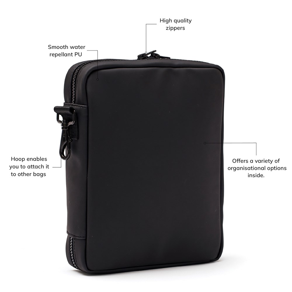 Houd alle benodigdheden bij de hand met deze handige organizer. Hier heb je ruimte voor alles wat je overdag nodig hebt, zoals een koptelefoon, powerbank, pennen en notitieboekjes. Met de karabijnhaak aan de korte zijde bevestig je de organizer aan een grotere tas.