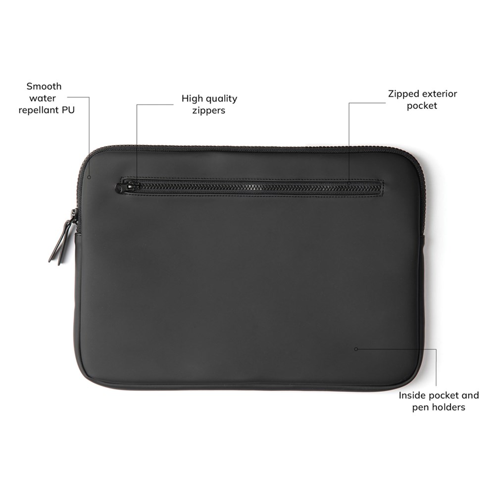 Een stijlvolle laptophoes die je computer tegen stoten en vocht beschermt. Gemaakt van een lichte, waterafstotende nubuck-PU stof met een elegante matte buitenkant en een binnenkant van licht synthetisch weefsel. Geschikt voor laptops met een grootte van in totaal 15 inch. Denk eraan dat de afmetingen van het scherm niet hetzelfde zijn als die van de gehele laptop.