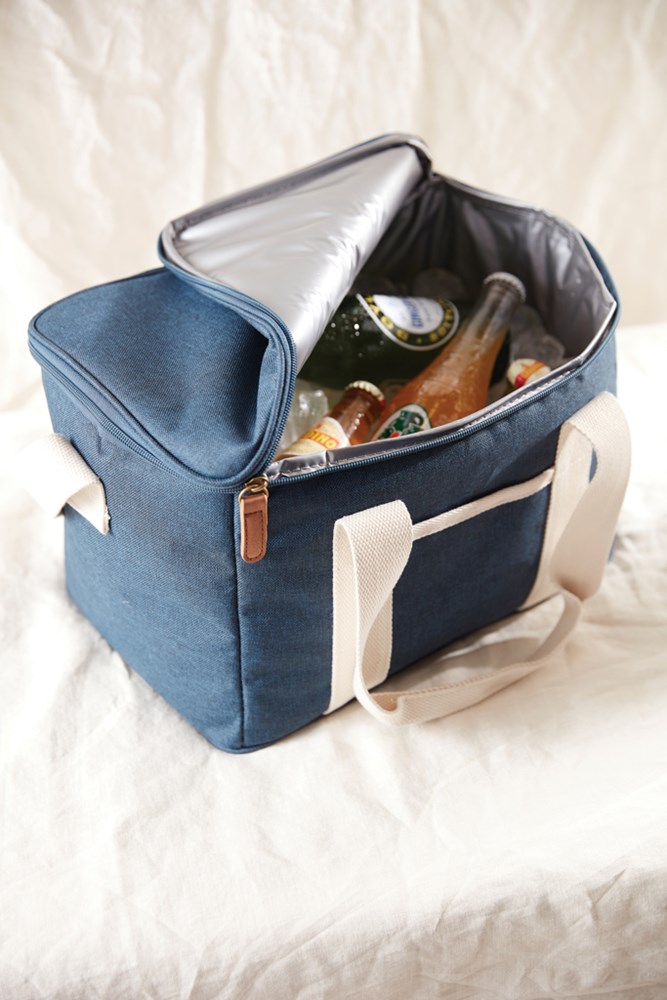 Een ultieme koelmand met gemêleerde kleuren en details gemaakt van katoen en imitatieleer. De koeltas heeft ook een klein compartiment aan de buitenkant van de koeltas, dat ruimte biedt voor nog andere spullen. De dikke EVA-vulling zorgt ervoor dat de kou lang wordt vastgehouden. Het is ook gemakkelijk te reinigen en te drogen na gebruik. Met een verstelbare schouderband en een dubbel handvat heeft u verschillende manieren om de koeltas te dragen.