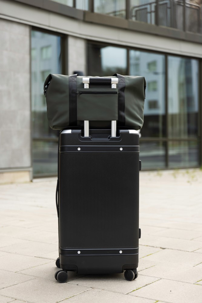 Een weekendtas in reisformaat, gemaakt van gedeeltelijk RCS-gecertificeerd recycled polyester met een gestroomlijnde PU-coating. Ontworpen om alles in op te bergen wat je nodig hebt voor een uitstapje van 1-2 nachten. Maak je tas eenvoudig vast aan je trolley met een slim 2-in-1 ritsvak. Met zowel comfortabele handgrepen als een afneembare verstelbare schouderriem. Binnenin een kleiner ritsvak voor je benodigdheden. RCS-certificering garandeert een volledig gecertificeerde toeleveringsketen van gerecyclede materialen. Totaal gerecycled materiaal: 20% gebaseerd op het totale gewicht van het artikel.