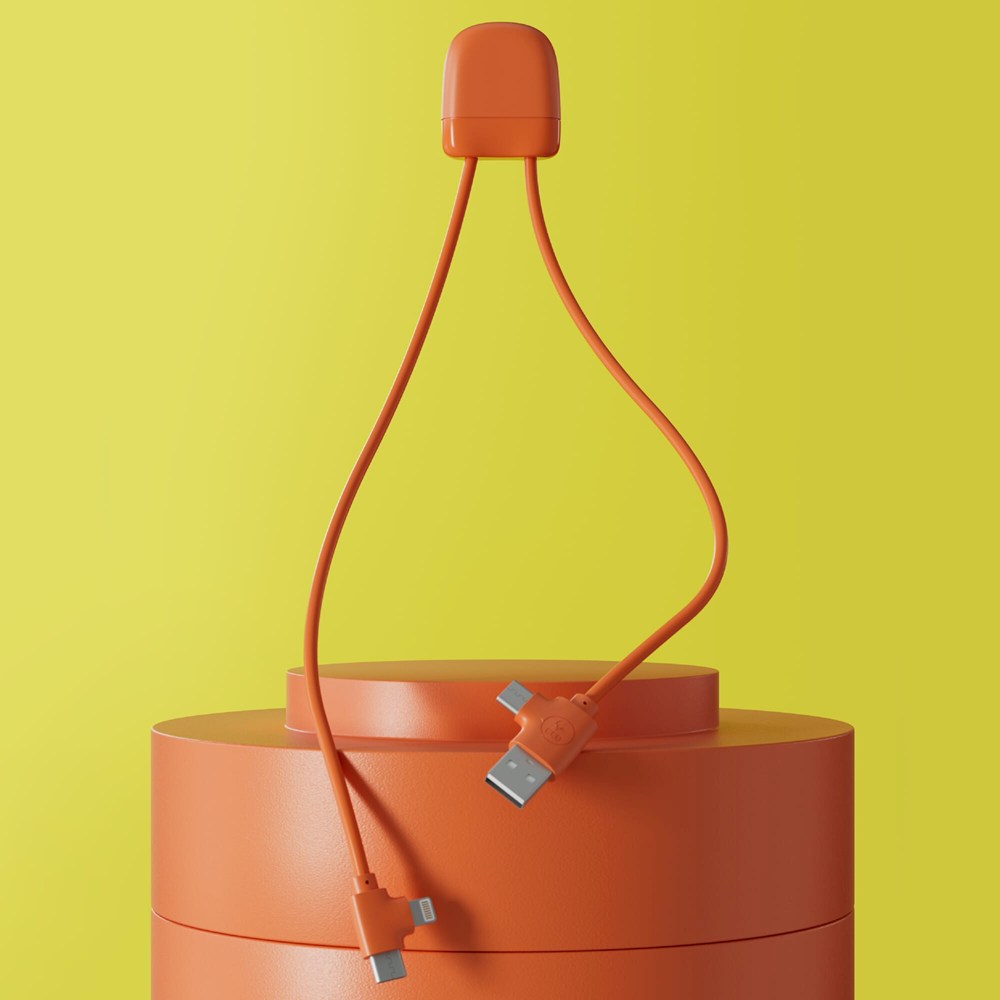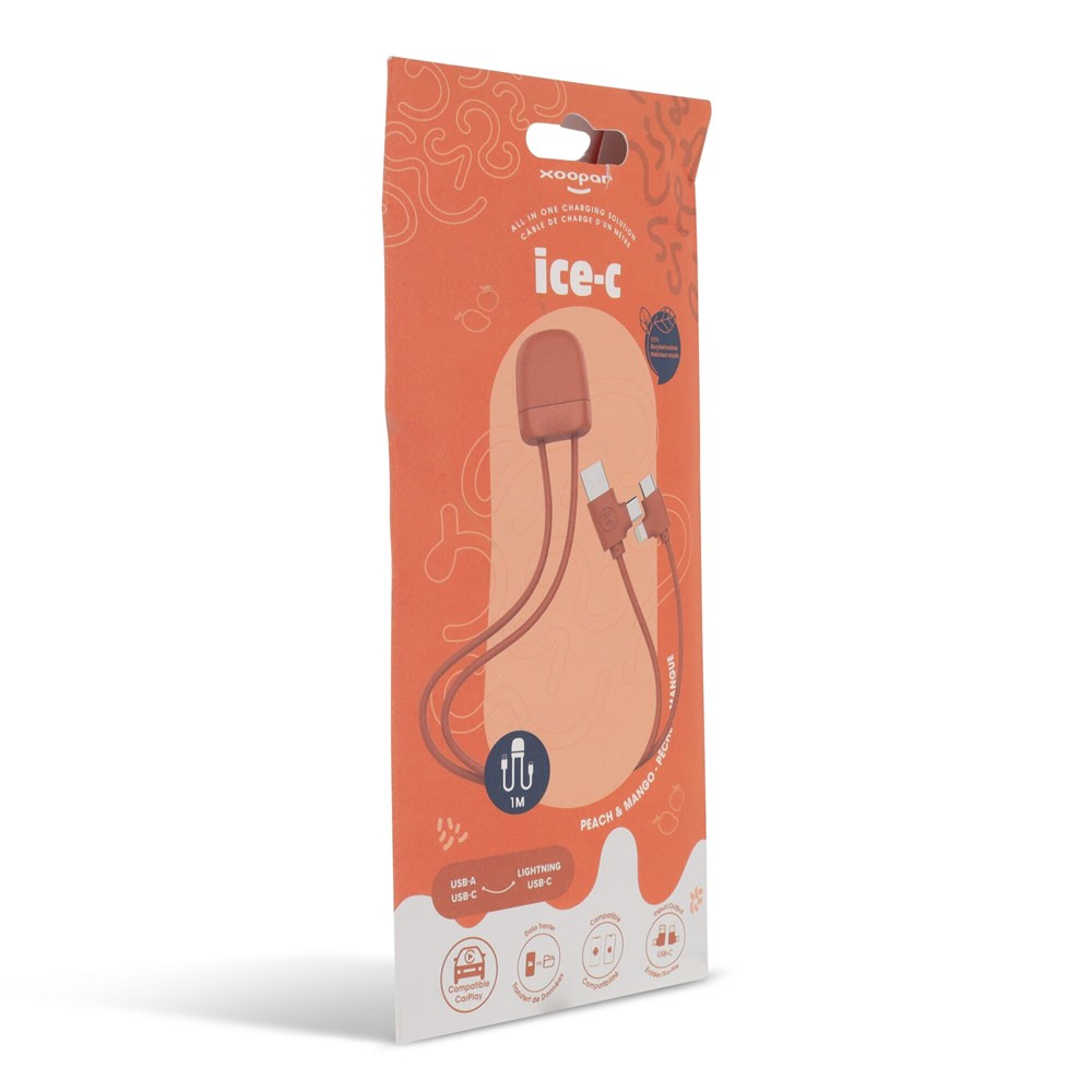 De 27Watt ICE-C oplaadkabel is onze nieuwste multi-oplaadkabel, met een dubbele USB & USB-C ingang en een dubbele USB-C & lightning uitgang. De kabel heeft een lengte van twee keer 50 cm en ondersteunt gegevensoverdracht en autoplay. De totale gerecyclede inhoud is 55% gebaseerd op het gewicht van het artikel. De kabel is verpakt in een duurzame FSC-gecertificeerde papieren envelop.