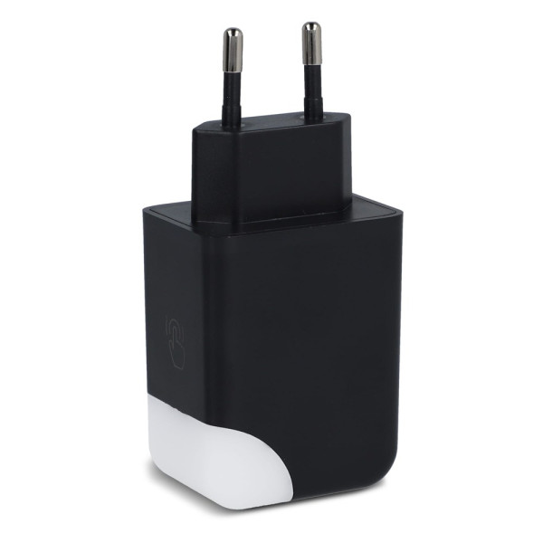 Deze GaN-stroomadapter van 65 W is ontworpen om laptops, tablets en smartphones snel en efficiënt op te laden. Hij beschikt over een USB-A poort met maximaal 18W vermogen en een Type-C poort met maximaal 65W vermogen. Wanneer beide poorten tegelijkertijd worden gebruikt, levert hij maximaal 9 W vermogen per poort. Het slimme oplaadindicatielampje geeft niet alleen de oplaadstatus aan, maar gaat ook uit als het apparaat volledig is opgeladen en kan handmatig worden uitgeschakeld door het aan te raken. Het compacte en praktische ontwerp maakt hem gemakkelijk in gebruik. Het is gemaakt van brandwerend gerecycled plastic, wat zorgt voor veiligheid en duurzaamheid. Of je nu thuis, op kantoor of onderweg bent, deze adapter is een betrouwbare stroomoplossing voor al je apparaten.