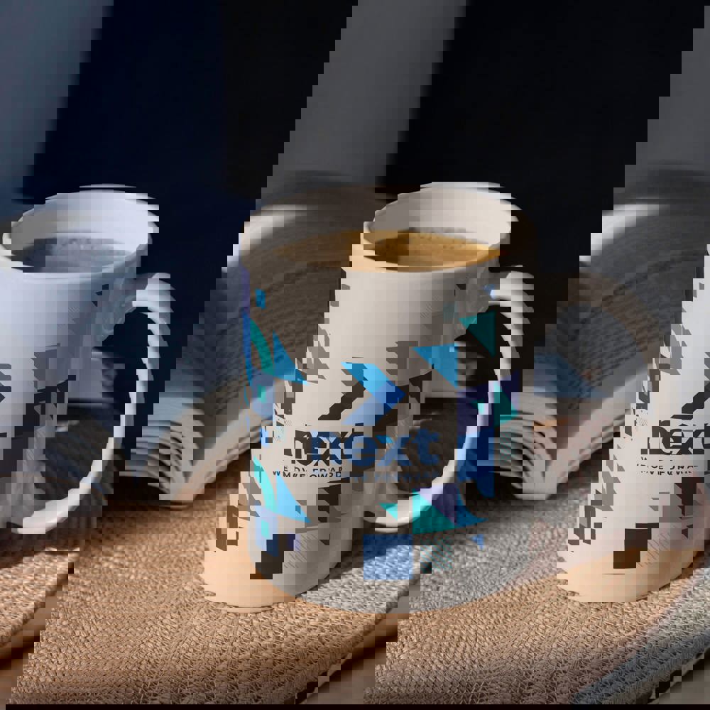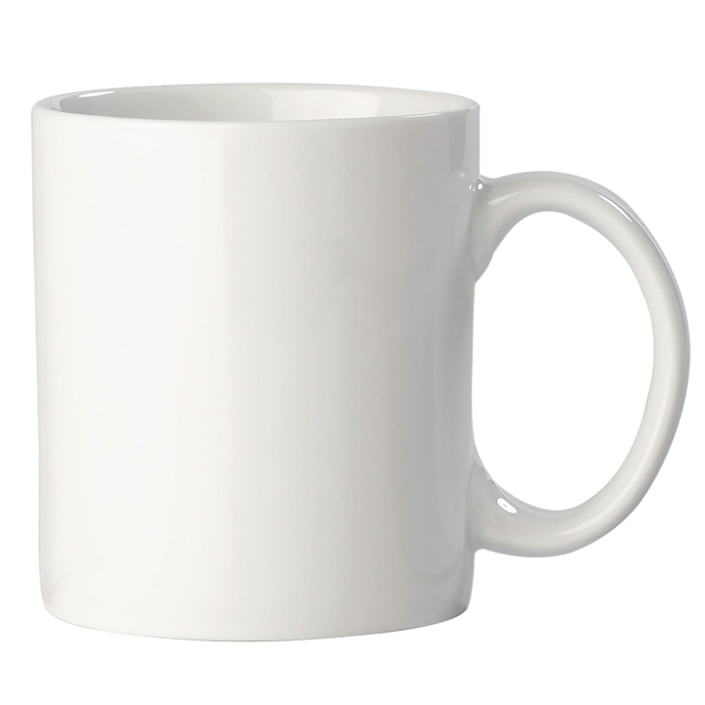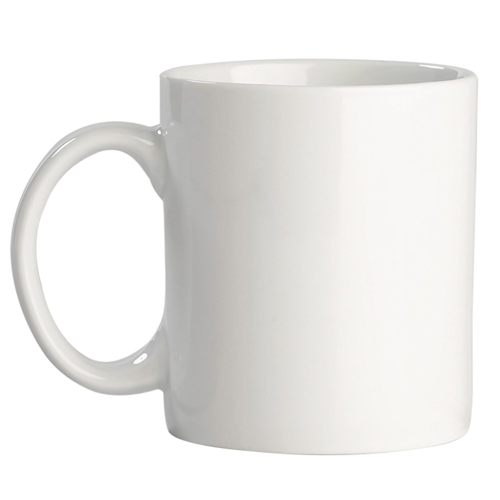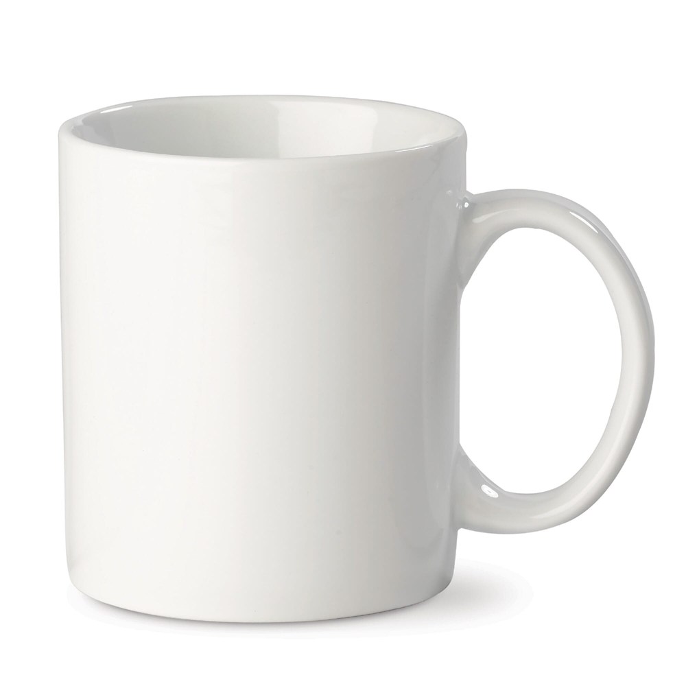 Grote witte mok van hoogwaardig porselein. Geproduceerd in Europa. Groot drukoppervlak.
