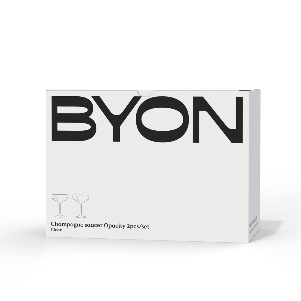 Deze luxe Opacity Champagne coupes zijn gemaakt van helder glas met een prachtig gesponnen glaspatroon. De coupes zijn ook perfect te gebruiken voor dessets of likeur. Het gebruiken van de coups, garanderen een feestelijker gevoel. Een ontwerp weerspiegeld het contrast tussen luxe en eigenzinnigheid. Ontwerp door Studio Byon. Geleverd als set in Giftbox.